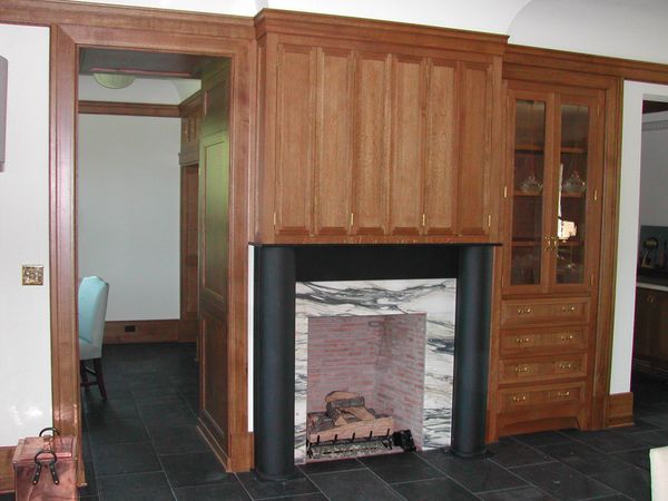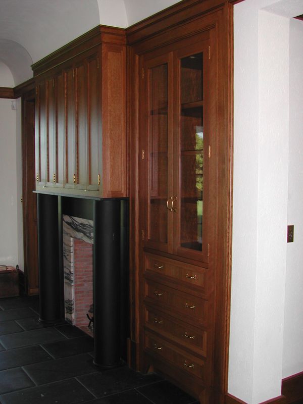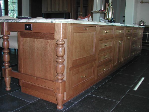 New York City client wanted a kitchen fashioned after one they saw on Rhode Island mansions tour. Included kitchen, home office, powder room, and mudroom cabinetry all in the same style. Interiors of cabinets and drawer boxes are stained to match.
